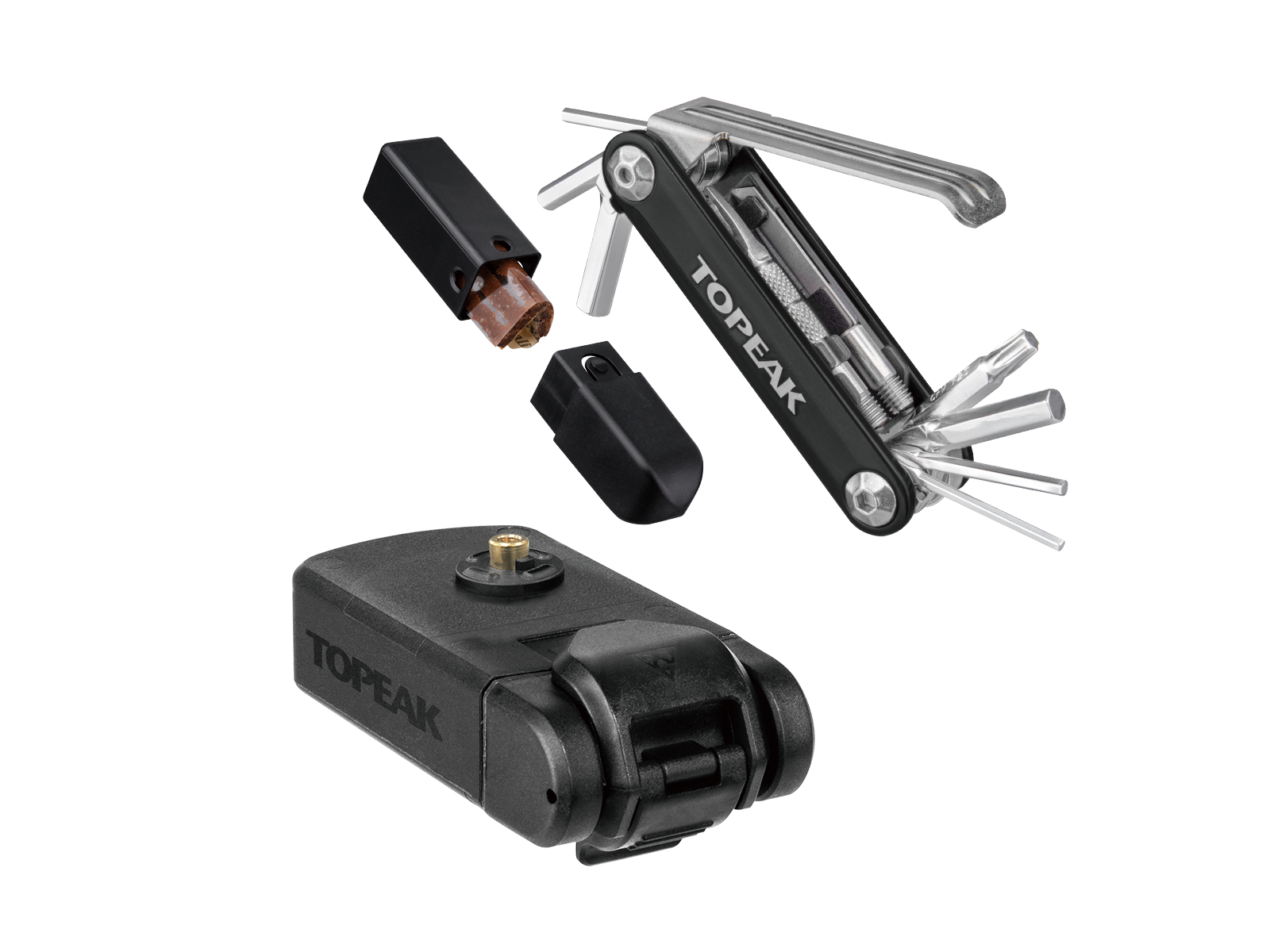 Está montado bajo el soporte ninja con soporte de jaula intercambiable o se usa solo con un soporte de chasis.   Estas herramientas resistentes a la caja para el clima contienen una mini herramienta para reparar 11 neumáticos de funciones y una caja de tapones con 5 piezas de 3.5 mm x 5 cm para reparar neumáticos y mantenimiento de bicicletas de carretera o vía.